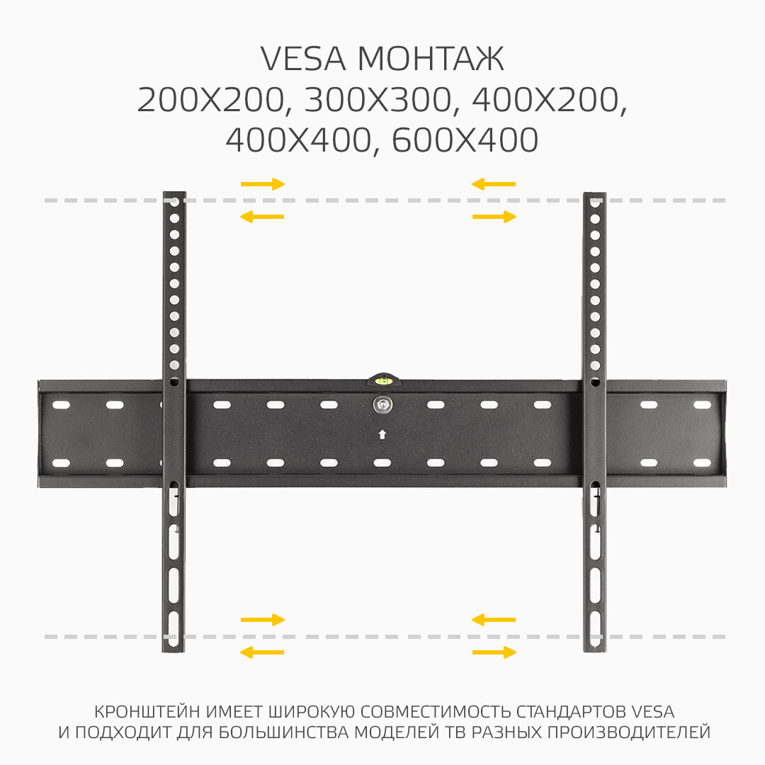 Лучшие цены. Широкоформатный ультратонкий фиксированный кронштейн. Тип кронштейна: фиксированный; Совместимость: поддерживает ТВ с диагональю 37-70; Максимальный вес ТВ: 40 кг; Крепление стандарта Vesa: до 600х400; Типы VESA: 200x200/300x300/400x200/400x400/600x400; Материал корпуса: сталь; Цвет: черный; Вес: 1260 гр; Размеры (ШхВхГ): 643x425x30 мм; Минимальное расстояние от стены: 30 мм; Максимальное расстояние от стены: 30 мм. Магазины в вашем городе.