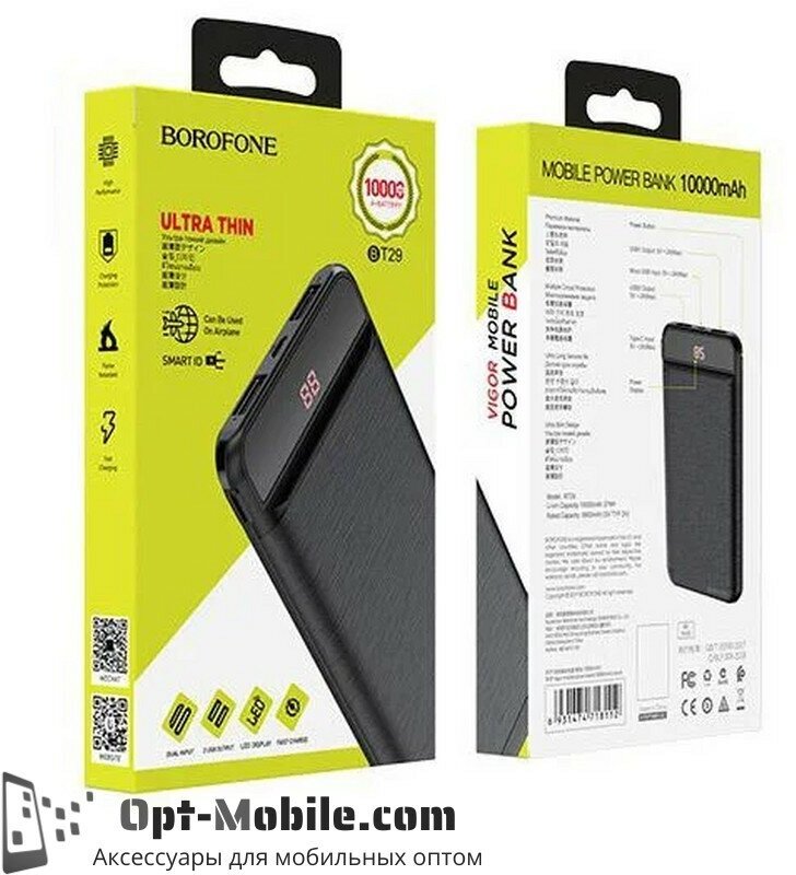 Лучшие цены. Артикул № 776475 Универсальный дополнительный аккумулятор BOROFONE BT29 будет незаменимым помощников в путешествиях, в походах, на прогулке и дома. Обладает рядом преимуществ: 1) Большая емкость 10000 мАч. 2) Универсальность. Подходит для любых мобильных устройств. 3) Многофункциональность. С его помощью можно заряжать сразу два девайса. 4) Минималистичный дизайн. 5) Наличие цифрового дисплея. 6) Встроенная многоуровневая защита. 7) Поддержка быстрой зарядки. 8) Компактные размеры и небольшой вес. Магазины в вашем городе.