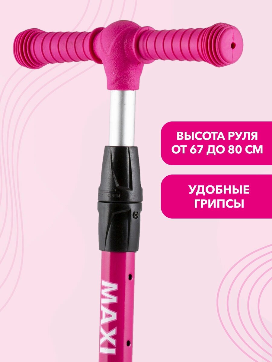 Самокат Maxiscoo Junior Delux 2021 со светящимися колёсами, цвет чёрный/розовый