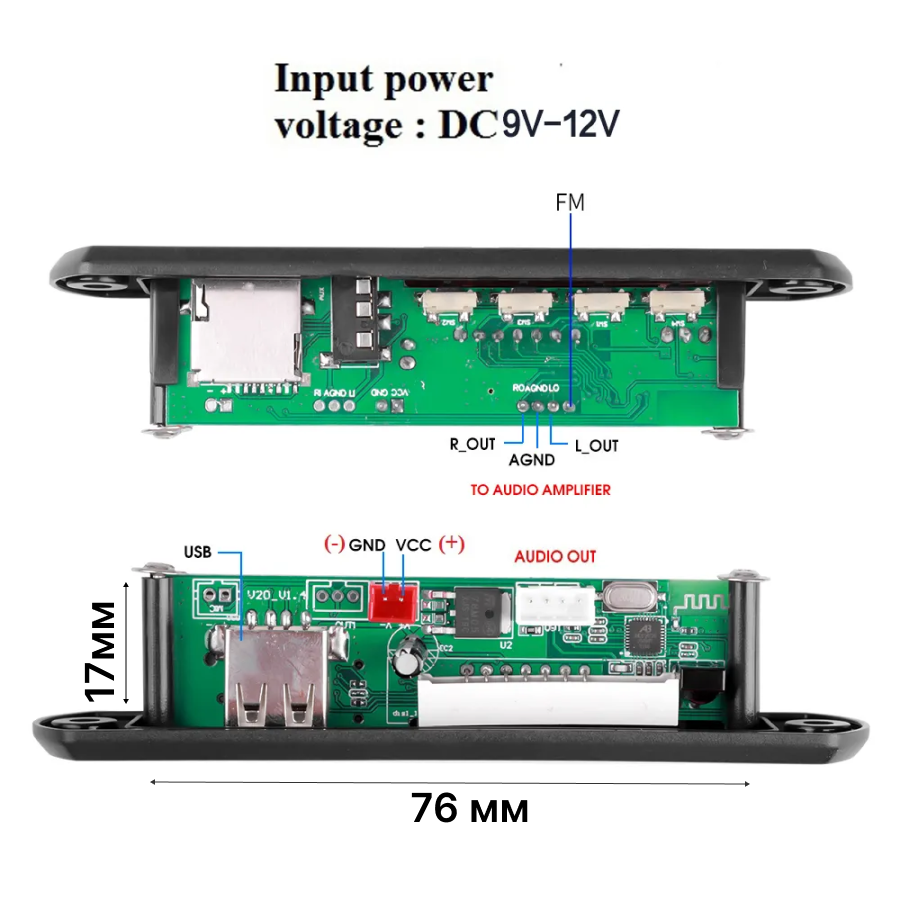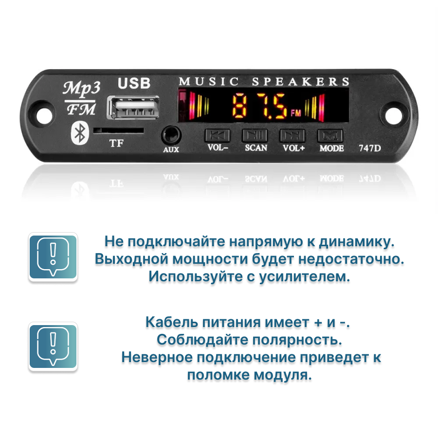 Автомагнитолы Модуль MP3 bluetooth/aux/usb. FM модуль. Блютуз модуль MP3/FM. Плеер с пультом Орбита OT-SPM01(12В)