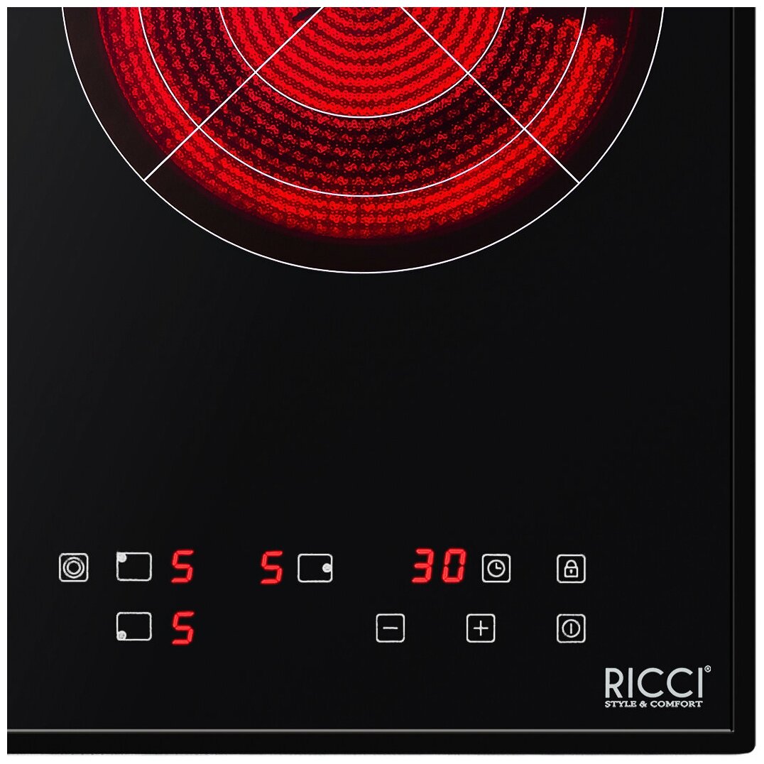 Лучшие цены. Встраиваемая электрическая панель Ricci DTL-D3500145B – узкая модель с тремя конфорками, подходящая для небольшой кухни. Это мощное и практичное устройство со стеклокерамической поверхностью со скошенными краями, позволяющее быстро готовить и разогревать еду. Сенсорное управление делает её очень удобной в использовании – вы можете регулировать мощность и устанавливать таймер лёгким прикосновением. Нужно просто нагреть блюдо? Включите поддержание тепла. Хотите ускорить приготовление. Магазины в вашем городе.