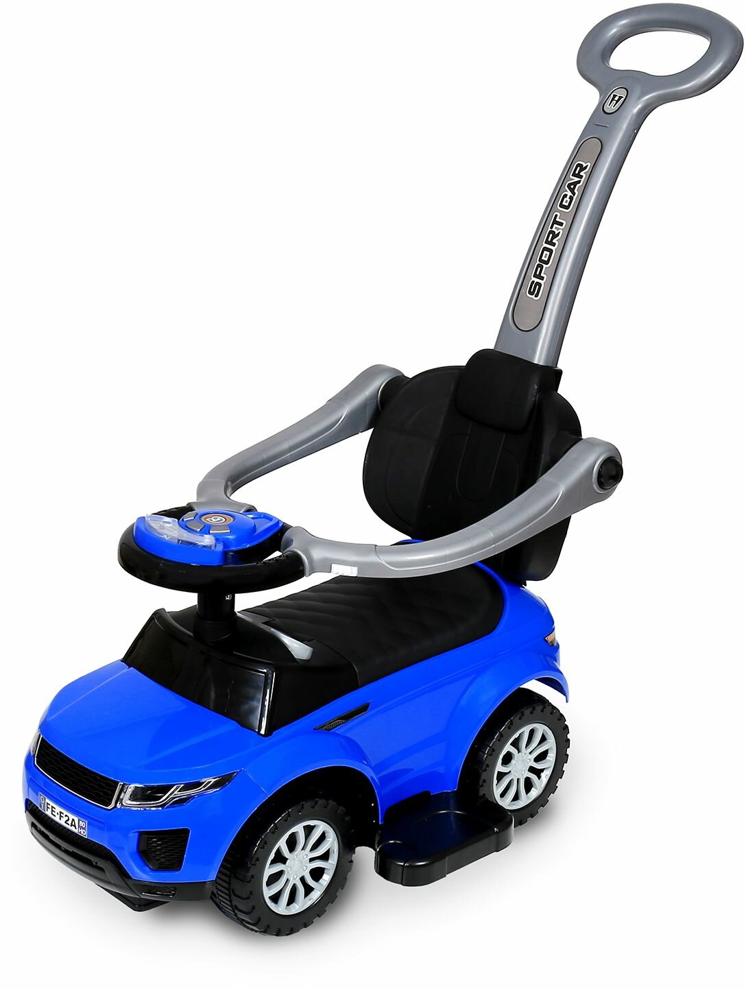 Каталка-пушкар с родительской ручкой, со светом и звуком, синяя