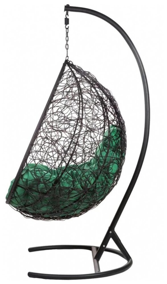 Кресло подвесное Bigarden "Tropica", коричневое, со стойкой, зелёная подушка (чехол в подарок)