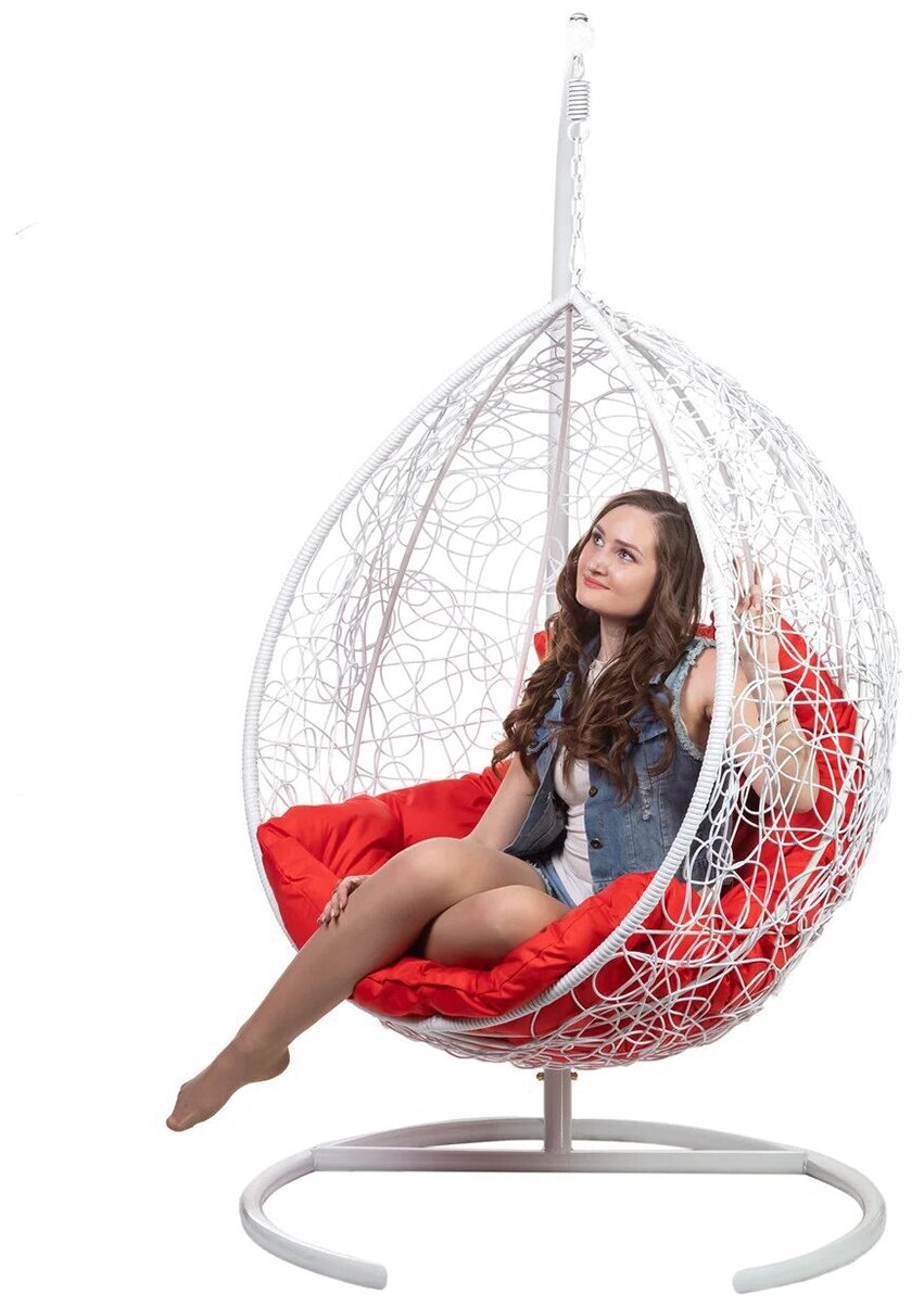 Кресло подвесное ювимет "Tropica", белое, со стойкой, красная подушка (чехол в подарок)