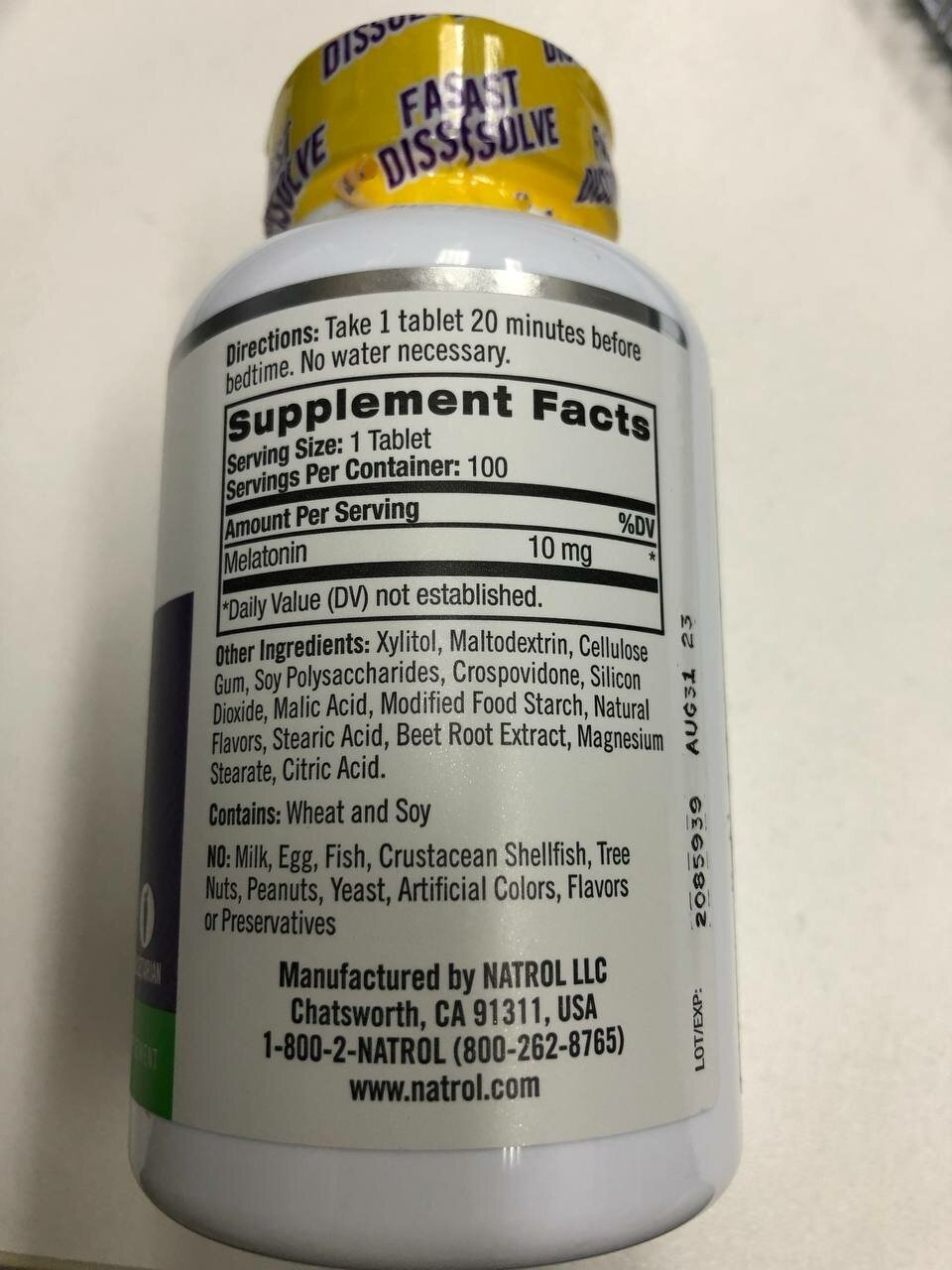 Аминокислоты Natrol Melatonin Fast Dissolve Citrus Natural Flavor 10 мг 100 таблеток