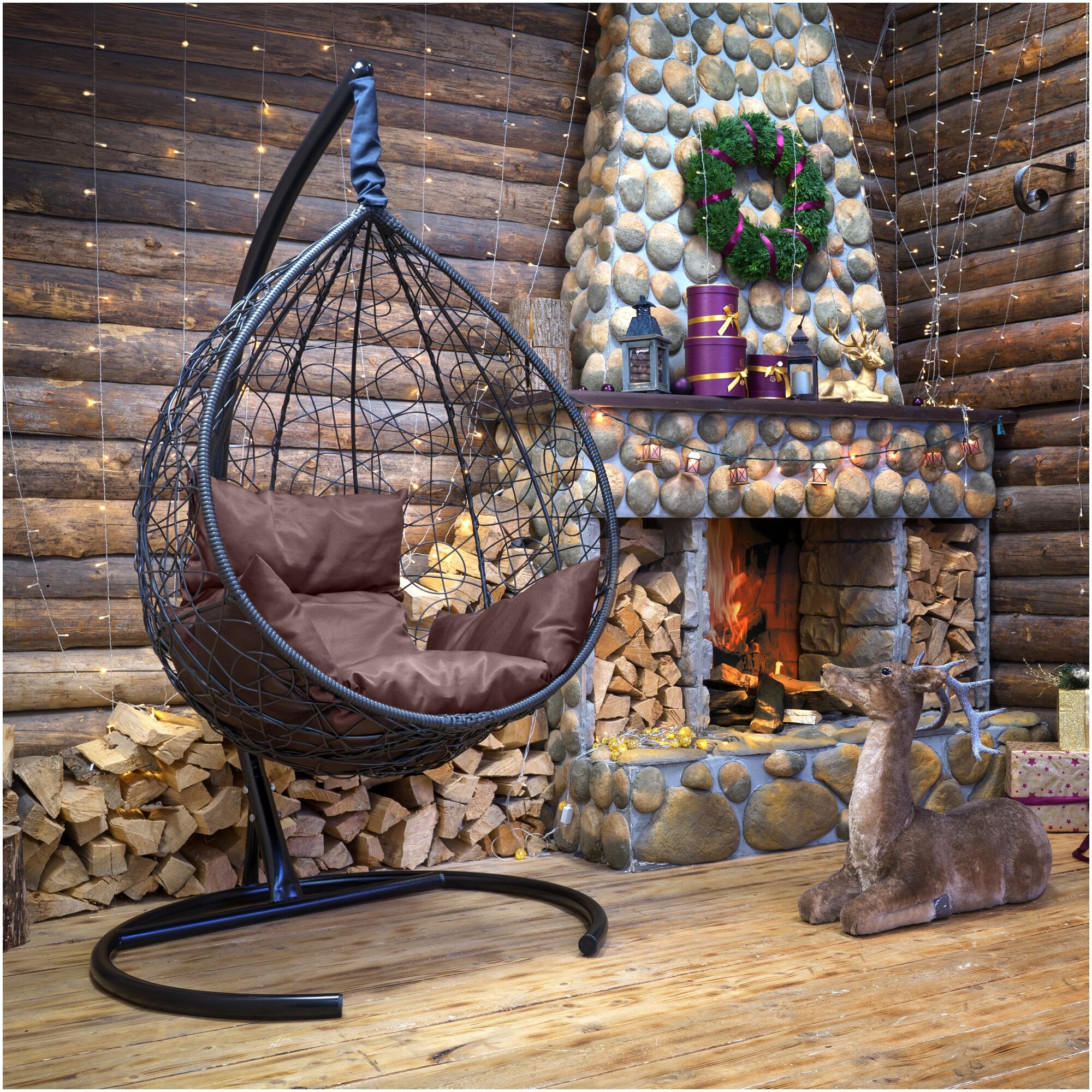 Подвесное кресло SEVILLA горячий шоколад + каркас (черная подушка)