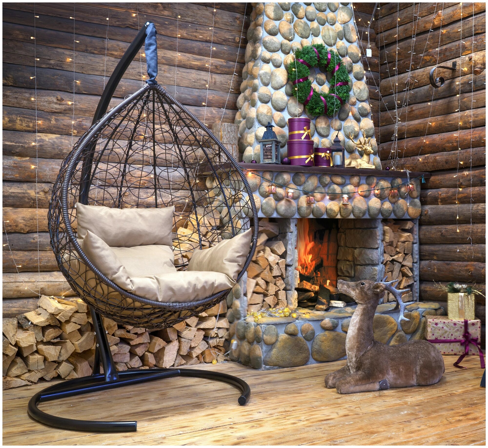 Подвесное кресло-кокон SEVILLA черный + каркас (бежевая подушка)