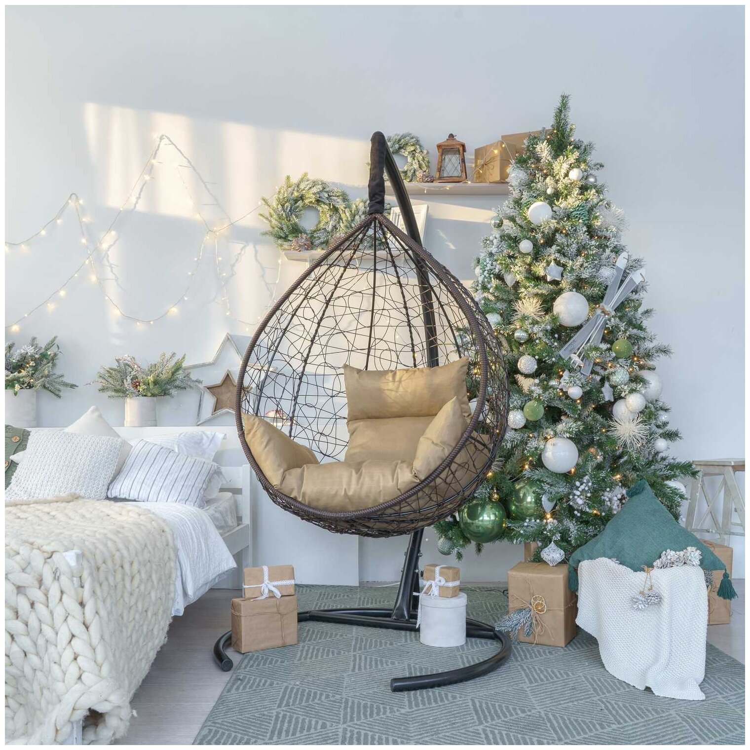 Садовая качель Подвесное кресло-кокон SEVILLA коричневый + каркас (бежевая подушка)