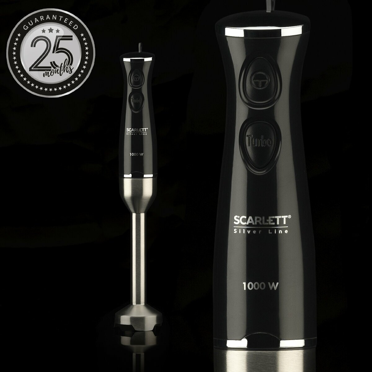 Миксеры и блендеры Блендер Scarlett SC-HB42F73 [1000 Вт, скоростей - 2, турборежим, измельчитель, стакан, венчик, черный, серебристый]