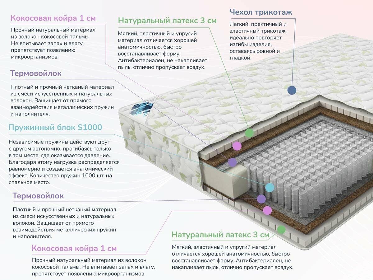 Лучшие цены. Усиленный блок пружин S1000 придает матрасу Мега Медиум ортопедических свойств. Пружины для большей прочности дополнены пенным блоком по периметру и помещены в нетканые чехлы. Пружины не скрипят, выдерживают большие нагрузки при длительной эксплуатации. Зеркальное расположение наполнителей из койры кокоса и перфорированного латекса, обеспечивает матрасу симметричную жесткость. Материалы дополняют друг друга создавая поверхность комфортную для сна и максимально полезную для расслабления позвоночника. Магазины в вашем городе.