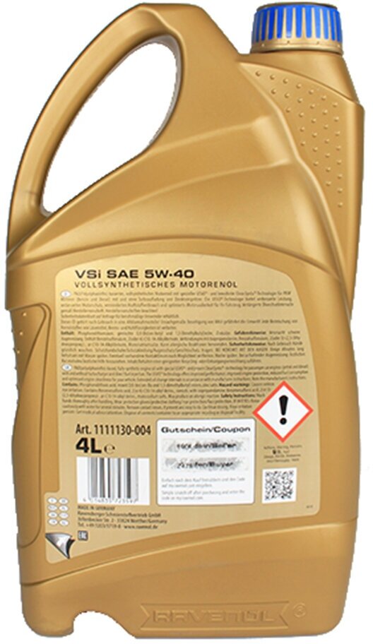 Sae 5W-40 4L Vsi New Моторное Масло Ravenol арт. 4014835723597