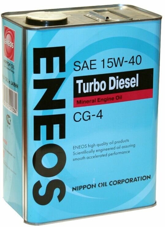 Лучшие цены. ENEOS Turbo Diesel API CG-4 - Минеральное моторное масло высшей классификации по API для дизельных двигателей с турбонаддувом. Обладает стабильными смазывающими свойствами, обеспечивает устойчивую масляную пленку в цилиндро- поршневой группе в условиях высоких температур. Смазочное масло ENEOS Turbo Diesel API CG-4 предназначено для применения в высокооборотных турбодизельных и дизельных двигателях. Магазины в вашем городе.
