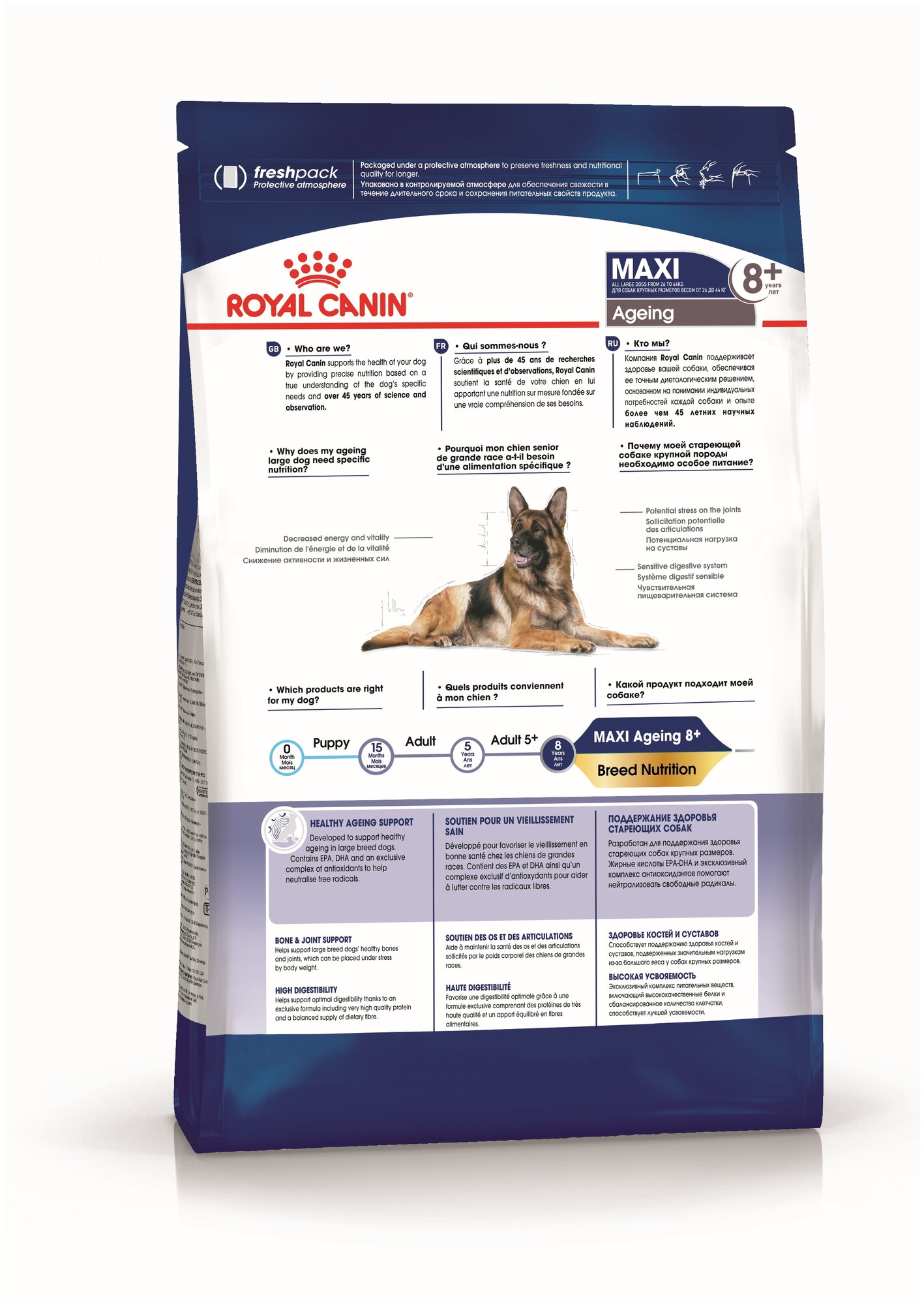 Лучшие цены. Макси эйджинг 8+: сухой корм для стареющих собак в возрасте 8 лет и старше. MAXI Ageing 8+ удовлетворяет особые потребности крупных собак в зрелом возрасте (весом от 25 до 45 кг). Поддерживает активность и здоровье пожилой собаки Поддерживает здоровье костей и суставов Способствует нормальному пищеварению Способствует здоровью кожи и шерсти 100% полнорационное и сбалансированное питание. Магазины в вашем городе.