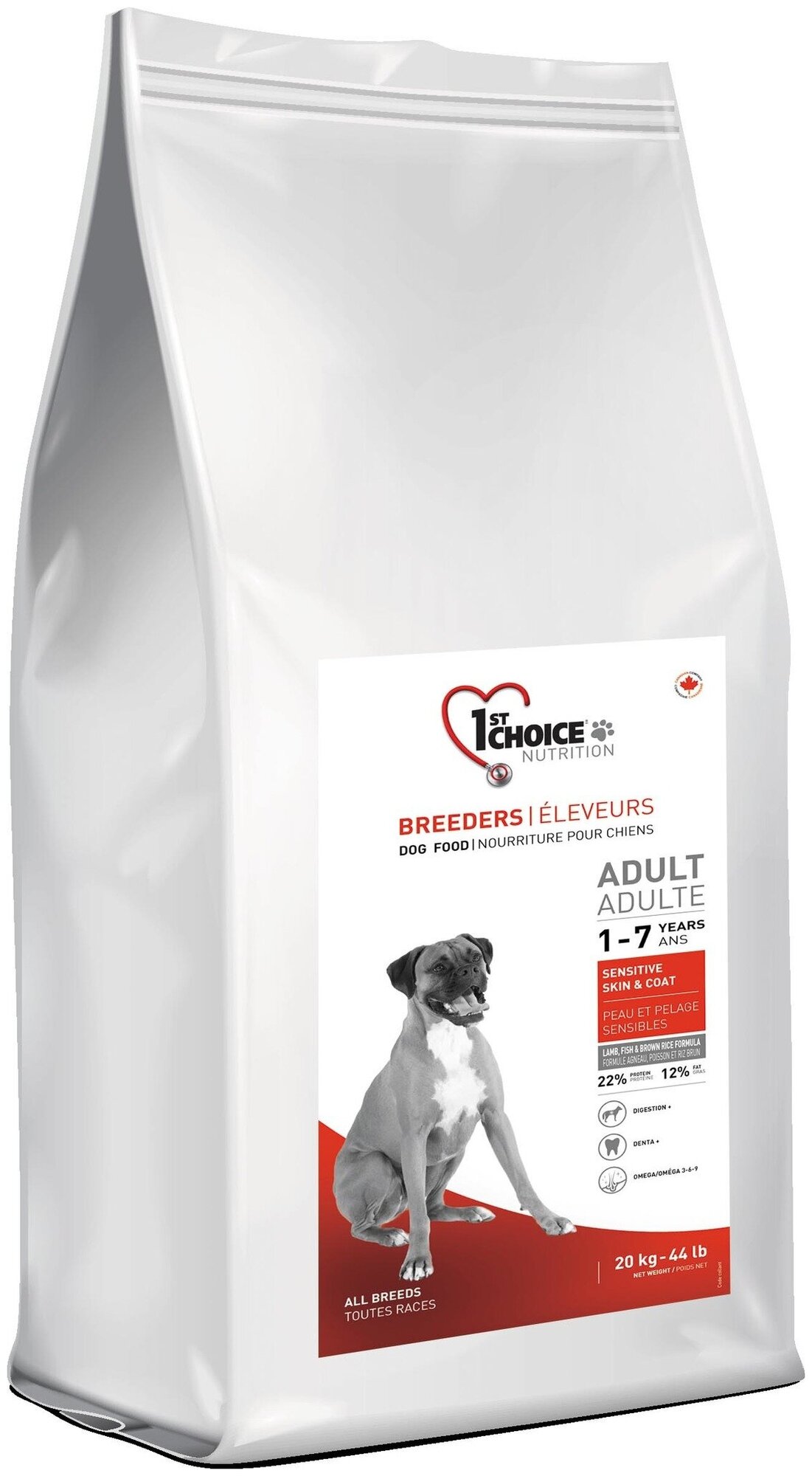 Корм для собак 1ST CHOICE BREEDERS ADULT ALL BREEDS SENSITIVE SKIN & COAT для взрослых собак всех пород при аллергии с ягненком, рыбой и рисом (20 кг)