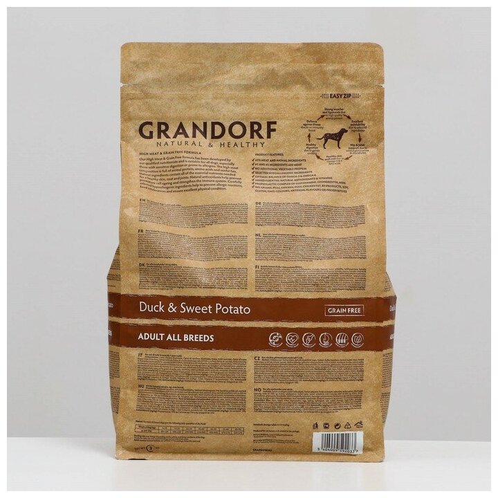 Корм сухой беззерновой Grandorf для взрослых собак всех пород, утка с бататом 3 кг