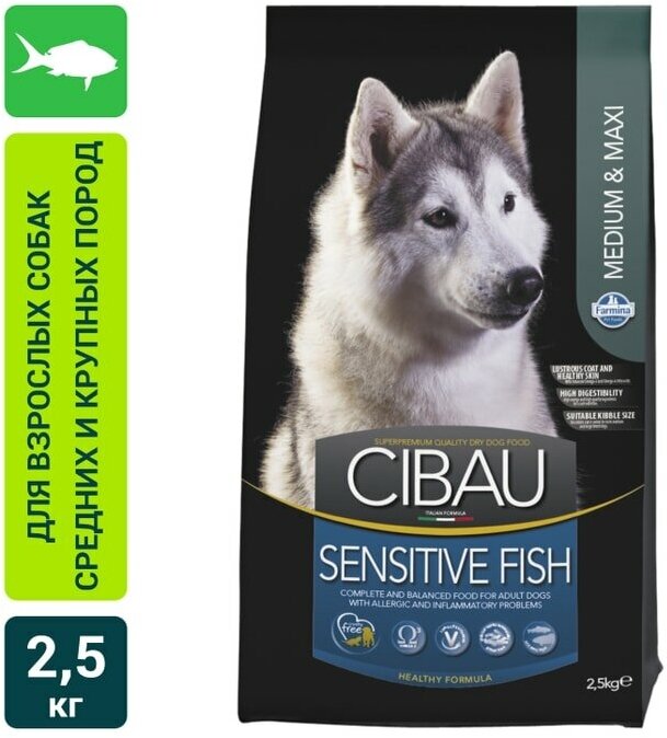 Сухой корм для собак Farmina Cibau Sensitive, гипоаллергенный, рыба 2.5 кг (для средних и крупных пород)