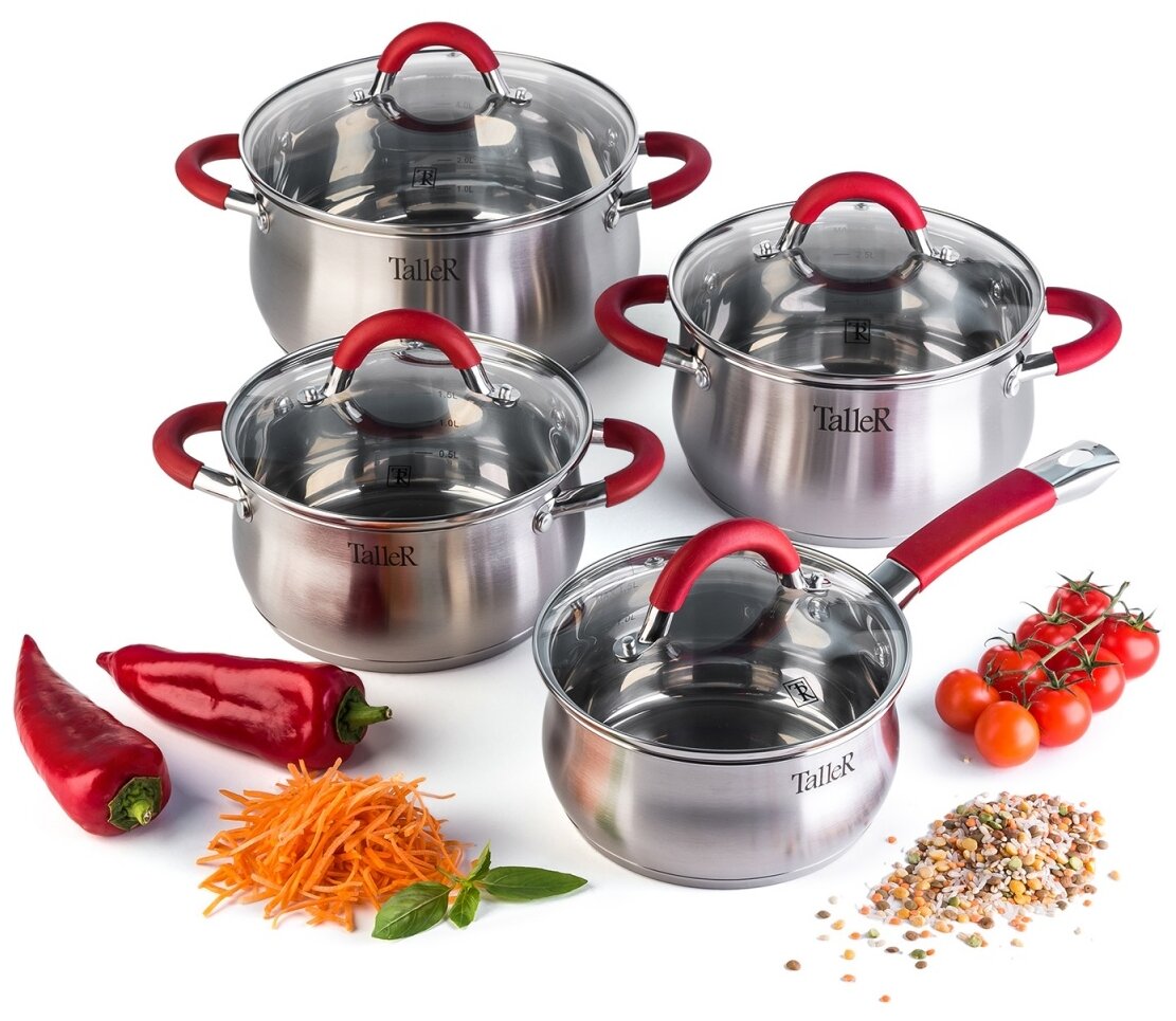 Набор посуды Taller Милфорд TR-17150 8 пр. стальной/красный
