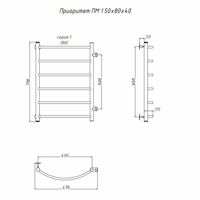 Полотенцесушители Водяной полотенцесушитель Тругор Приоритет 1 ПМ 80x40 Хром