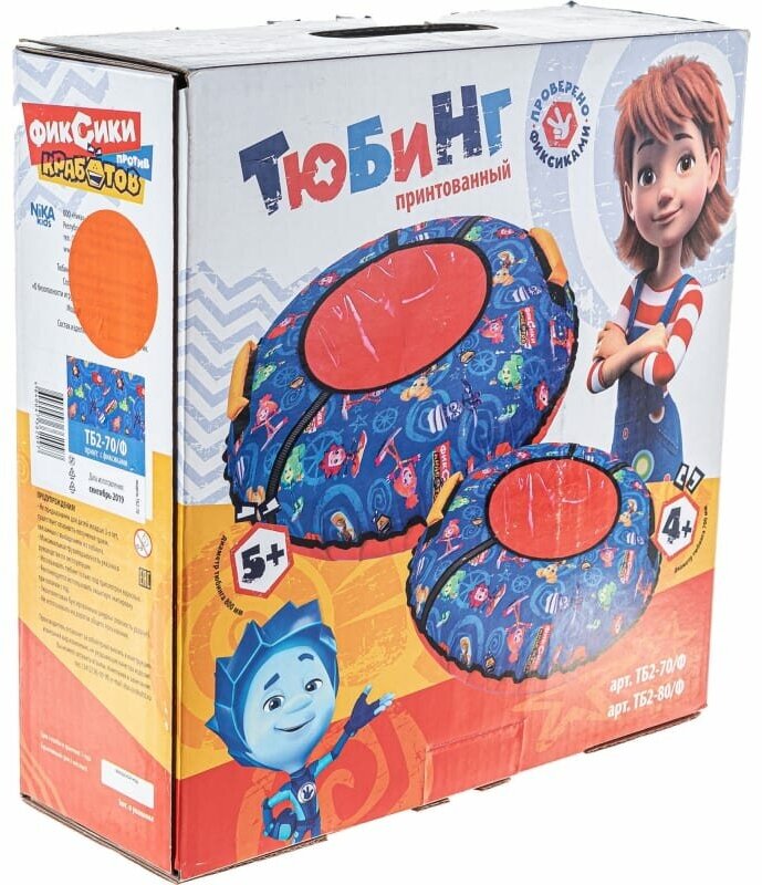 Лучшие цены. Тюбинг Ника Фиксики ТБ2-70 70 см - яркий, красочный из принтованной ткани в новом крое принесет незабываемые впечатления от зимней прогулки. Водонепроницаемая ткань из которой изготовлена верхняя часть изделия, создаст дополнительное сопротивление и не позволит выскользнуть из тюбинга. Небольшой веса изделия обеспечивает удобство для самого ребенка. Спустившись с горки ему не будет тяжело поднимать свое снаряжение обратно вверх. Магазины в вашем городе.