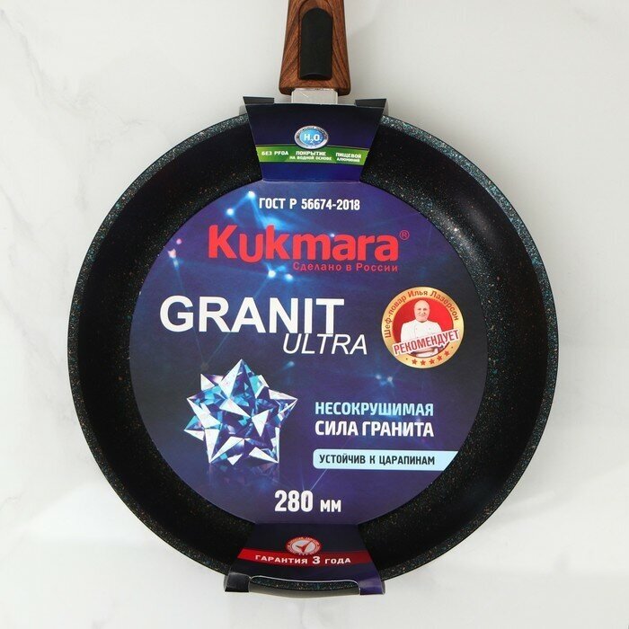 Универсальная сковорода KUKMARA Granit Ultra сга282а, общий диаметр 28 см.