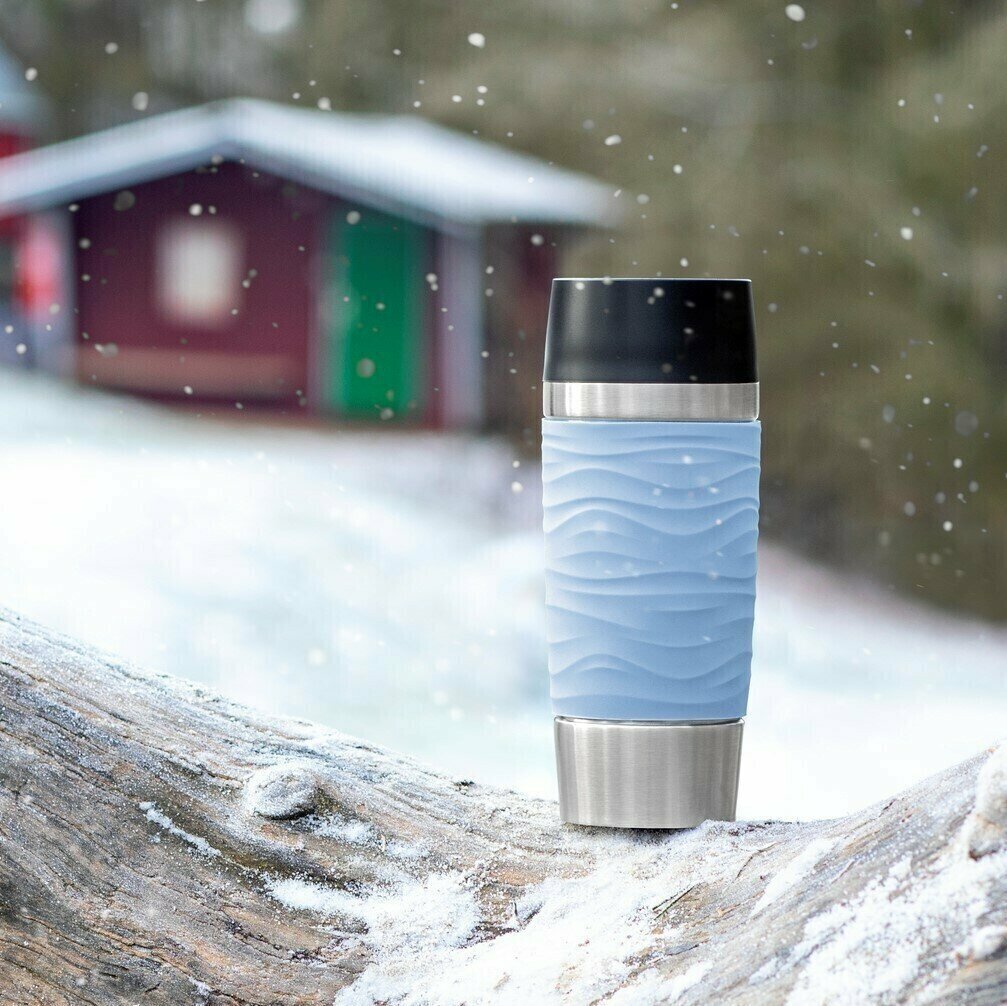 Лучшие цены. Термокружку Emsa Travel Mug WAVES N2010700 удобно использовать одной рукой – нажмите на пробку, чтобы открыть питьевое отверстие на 360° и пить любимые напитки с любой стороны. Термокружка на 100% герметична, а ее объем 0,36 л равен стандартной порции кофе в кофейне. Диаметр дна подходит для любых подстаканников в машине. Мягкий пояс комфортно лежит в руке и не дает термокружке выскользнуть. Благодаря вакуумной колбе напитки остаются горячими до 4 часов. Магазины в вашем городе.