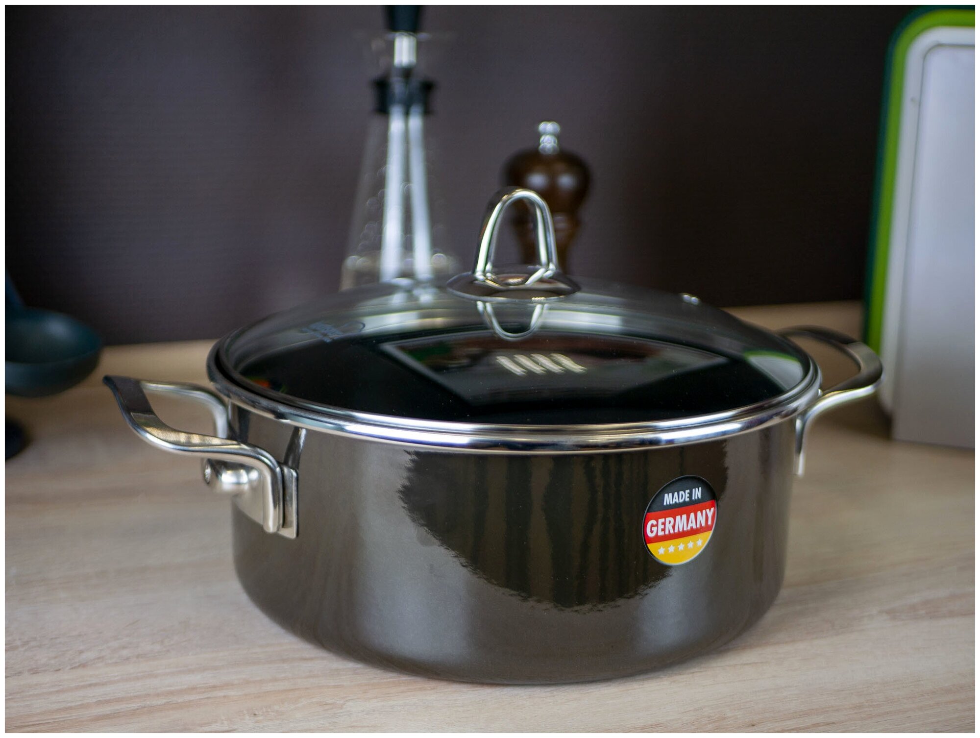 Кастрюля KOCHSTAR Metallica SOLID 4,3 л, 24 см, 5100981224, нержавеющая сталь, стеклянная крышка, эмалированная, серая, Германия
