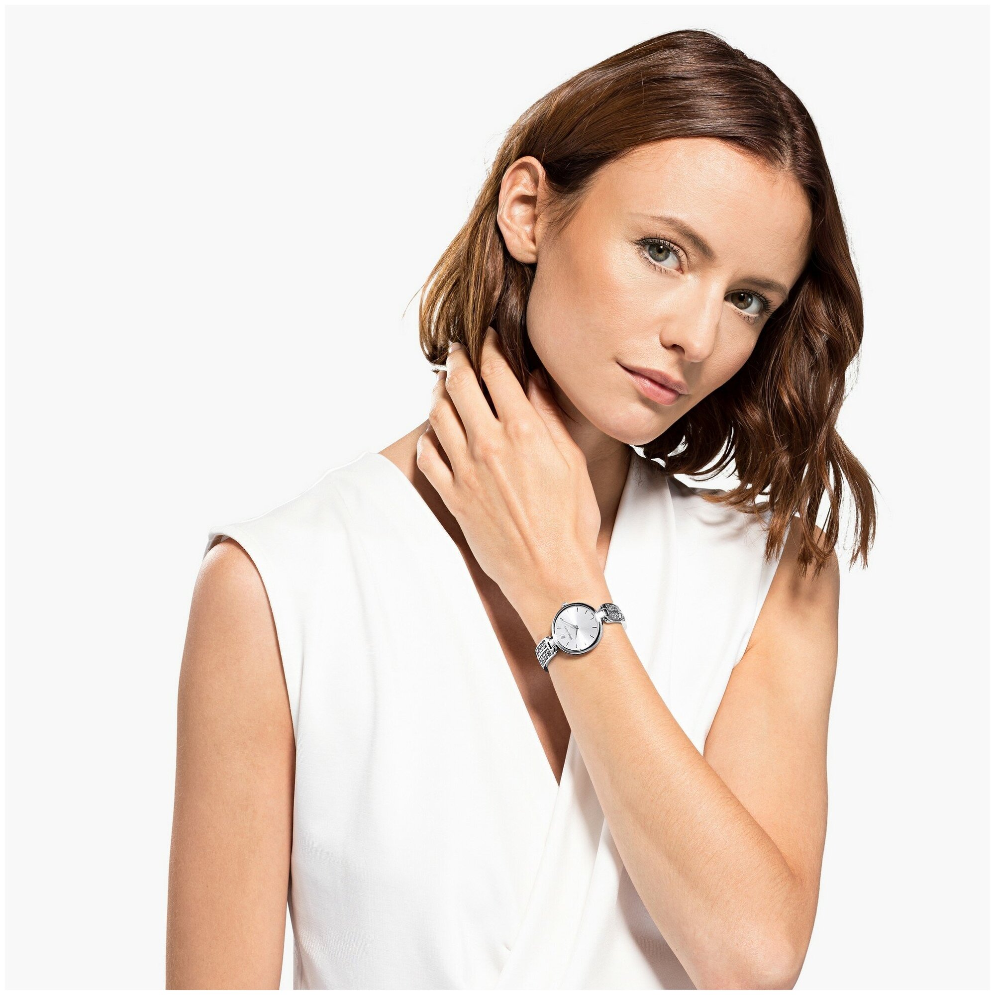 Лучшие цены. Сон рок-часы, металлический браслет, серебряный тон, нержавеющая сталь Эти часы коллекции Swarovski Dream Rock – это идеальное сочетание современного и женского дизайна и классической элегантности. Его серебристый белый радиальный диск устанавливается в корпус из нержавеющей стали. Браслет из нержавеющей стали украшен сотнями блестящих кристаллов, которые добавляют яркий блеск для швейцарского дизайна. Часы водостойкие до 50 м. Идеально подходит для работы и особых случаев. Магазины в вашем городе.