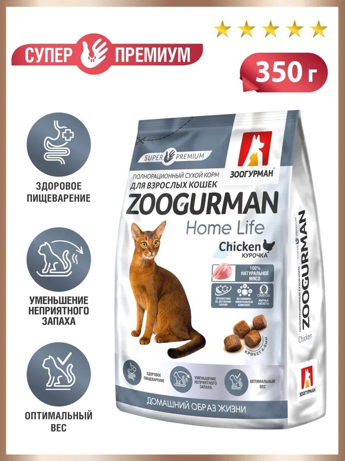 Корм для кошек зоогурман Home Life для живущих в помещении, курочка сух. 350г