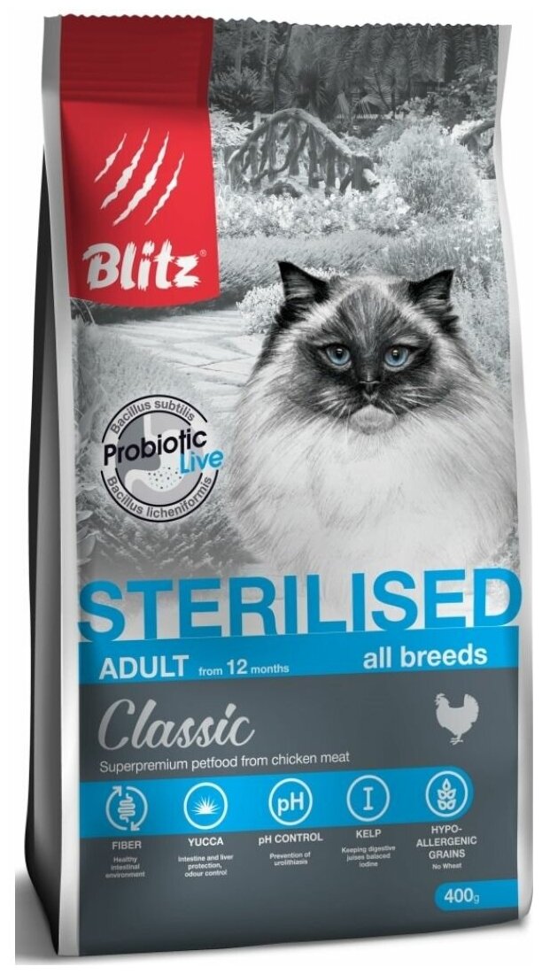 Корм сухой Blitz Classic Sterilised курица для взрослых стерилизованных кошек (2 кг)