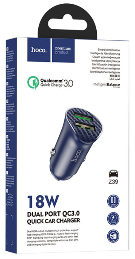 Автомобильное заряд. устр. Hoco Z39 2USB 18W 3A QC3.0 синее