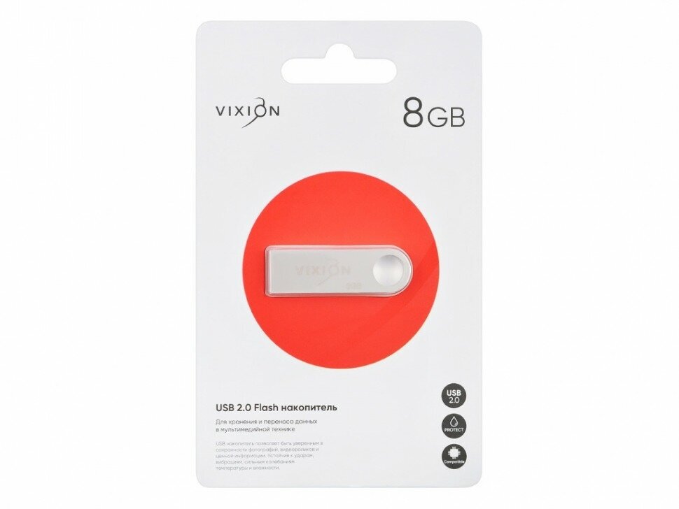 USB Flash (флешка) Накопитель USB Flash 08GB 2.0 VIXION Zinc Alloy (серебро)