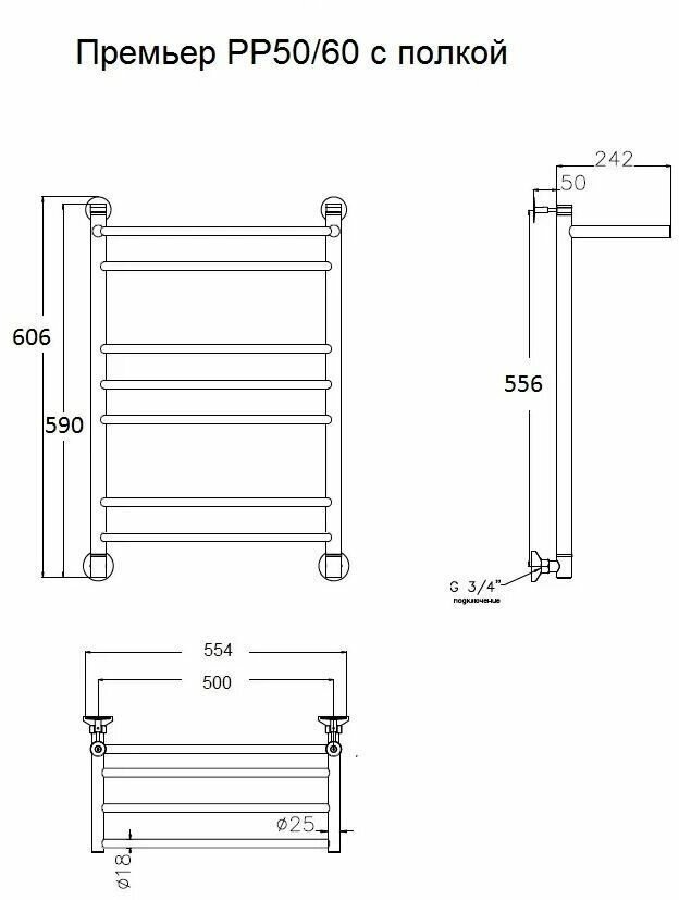 Полотенцесушители Премьер с полкой полотенцесушитель водяной 500х600 мм /8п/, лесенка, Termosmart