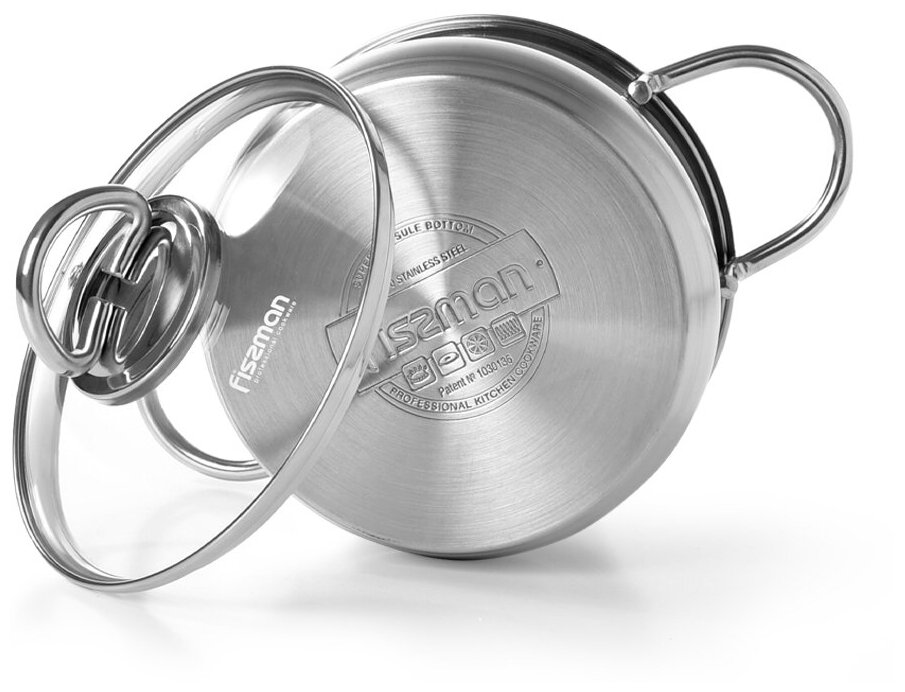 Кастрюля Кастрюля Fissman MONICA 20x11,5 см/3,6 л со стеклянной крышкой (нерж.сталь) (5403)