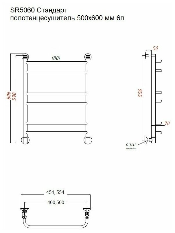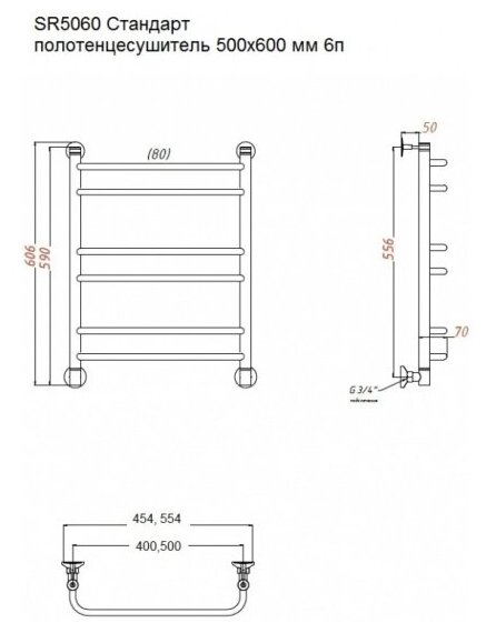 Полотенцесушитель Стандарт полотенцесушитель водяной 500х600 мм /6п/, лесенка, Termosmart