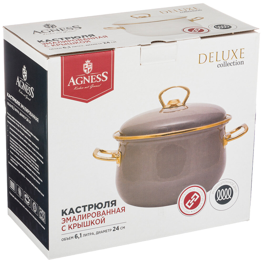 Кастрюля Кастрюля 951-105 agness эмалированная с крышкой, серия deluxe, 6,1 л