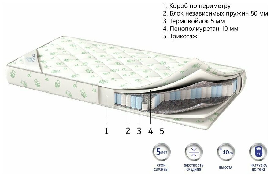 | Наполнитель | пенополиуретан, кокосовая койра, спанбонд |