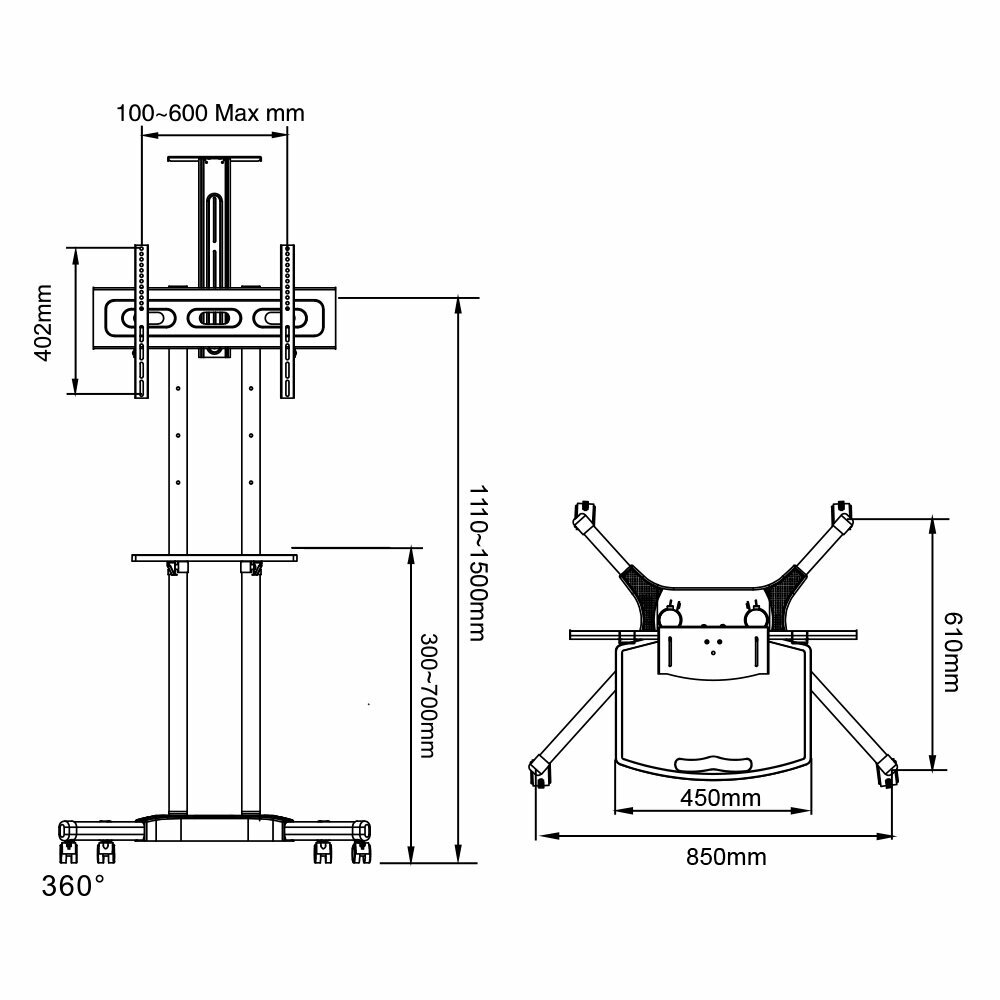 Стойка на колесах Arm media PT-STAND-12 черная для TV/LFD 32-70, полка, max VESA 600x400, высота 1110-1500 мм 8 296 ₽ Подробнее