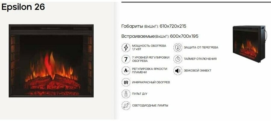 Функции | Таймер отключения / Тепловентилятор / Регулировка яркости пламени |