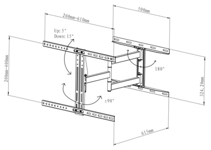 Наклонно-поворотный (колено) кронштейн Vivanco для размера до 85", макс. 50кг (37982)