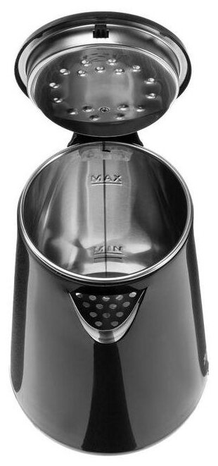 Лучшие цены. Параметры Объем 1,8 л Номинальная потребляемая мощность 1500 Вт Описание Чайник электрический предназначен для нагревания воды в бытовых и аналогичных условиях Двухслойный корпус: внутренняя колба из высококачественной нержавеющей стали и внешний корпус из пластика Цвет: черный Закрытый нагревательный элемент из нержавеющей стали Вращение корпуса на 360° Отметка максимального и минимального уровня воды внутри корпуса Световой индикатор работы Отсек для хранения электрошнура Автоматическое отключение при. Магазины в вашем городе.