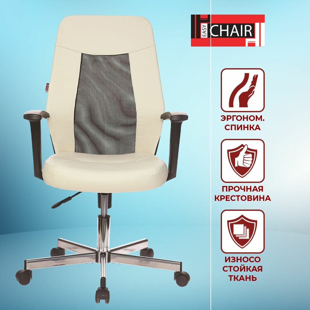 Компьютерные кресла Кресло офисное Easy Chair 225 DSL PTW к/з бежевый OR-10/сетка черная TW, хром