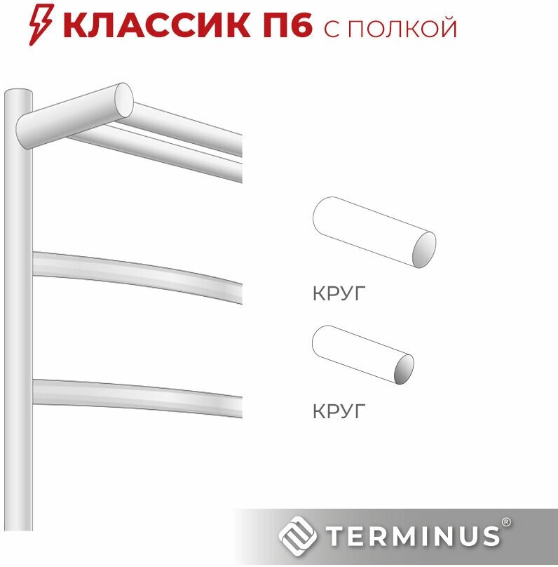 Полотенцесушители Полотенцесушитель электрический с полкой TERMINUS (Терминус) Классик с полкой П6 400х650 мм,нержавеющая сталь, диммер Quick Touch, гарантия 5 лет