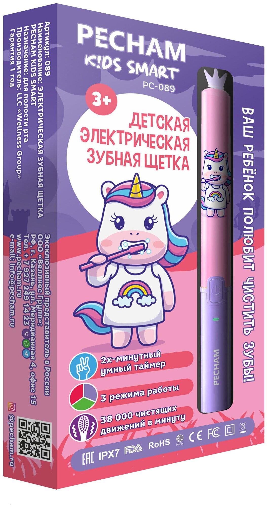 Электрические зубные щетки Детская электрическая зубная щетка PECHAM Kids Smart Unicorn 3+, 2 насадки, Electric toothbrush