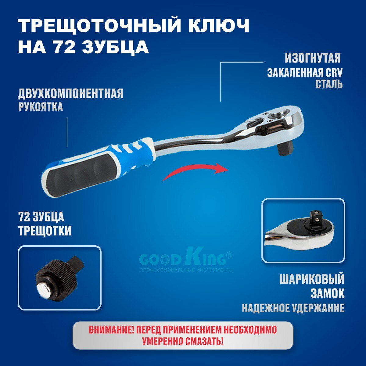 Лучшие цены. Набор инструментов превосходной торговой марки "GOODKING" произведён специально для автомобилистов и центров технического обслуживания. Каждый этап изготовления контролируется в соответствии с международными стандартами. Головки и комбинированные ключи изготовлены из высокопрочной хромованадиевой стали, придающей инструменту исключительную твердость в сочетании с легкостью. Магазины в вашем городе.