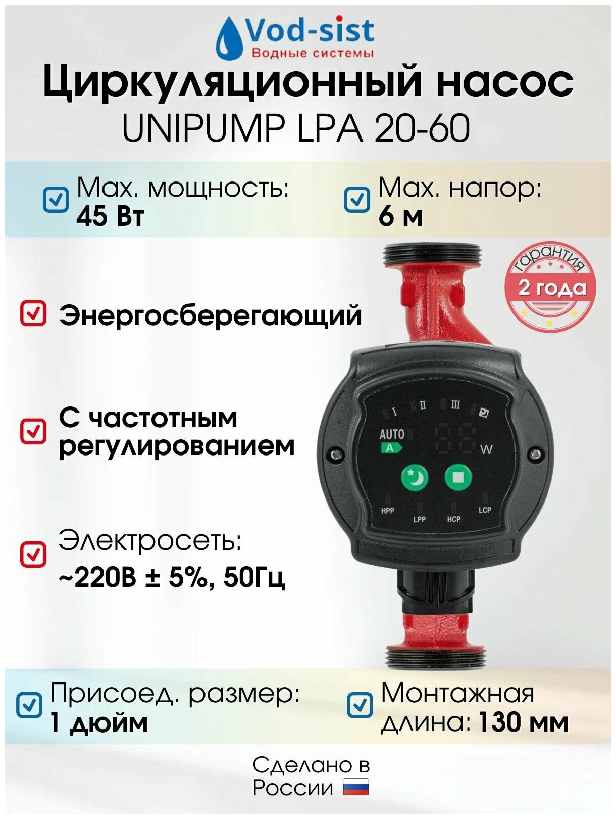 Циркуляционный насос UNIPUMP LPA 20-60 (45 Вт)