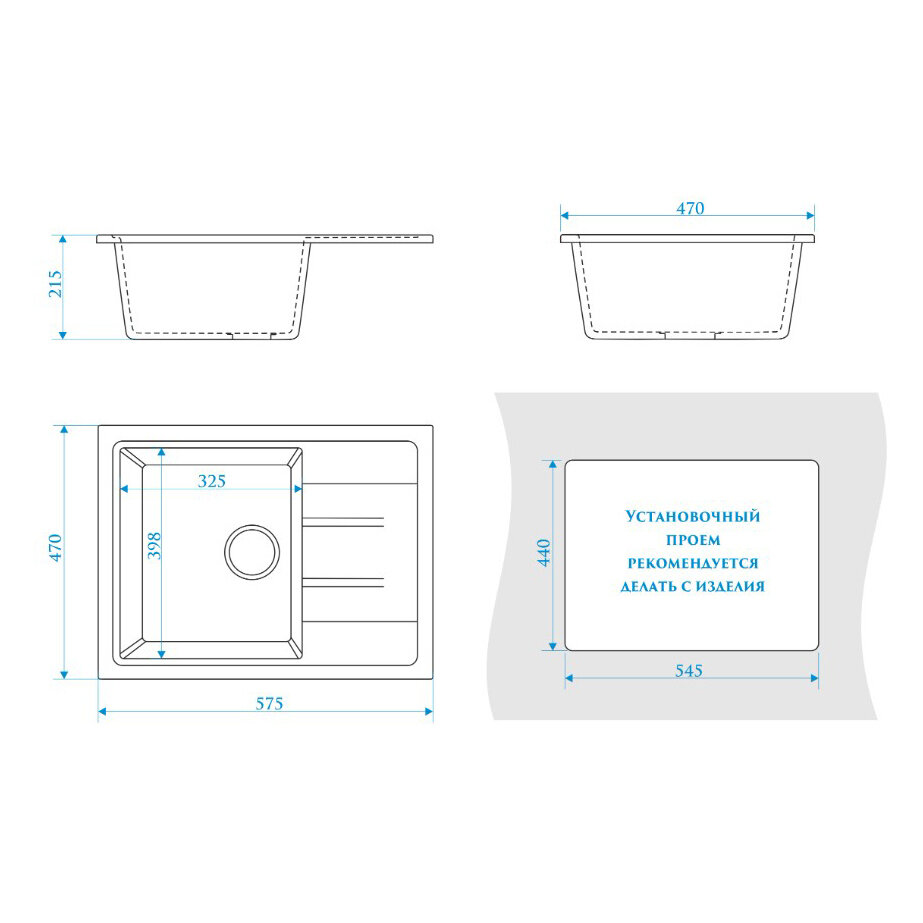 Кухонная мойка Zett Lab 150/Q8 темно-серый T150Q008 .