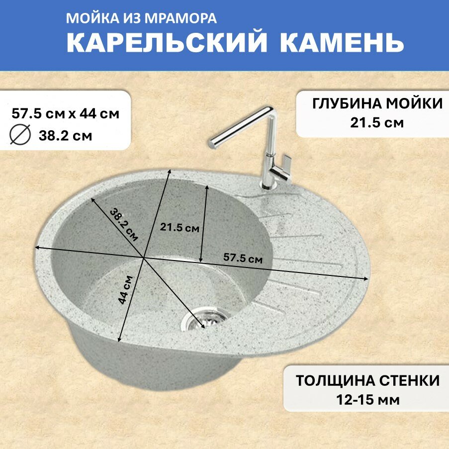 Мойка кухонная овальная Marrbaxx Тейлор Z10 светло-серый (Z010Q010) 4 874 ₽ Подробнее
