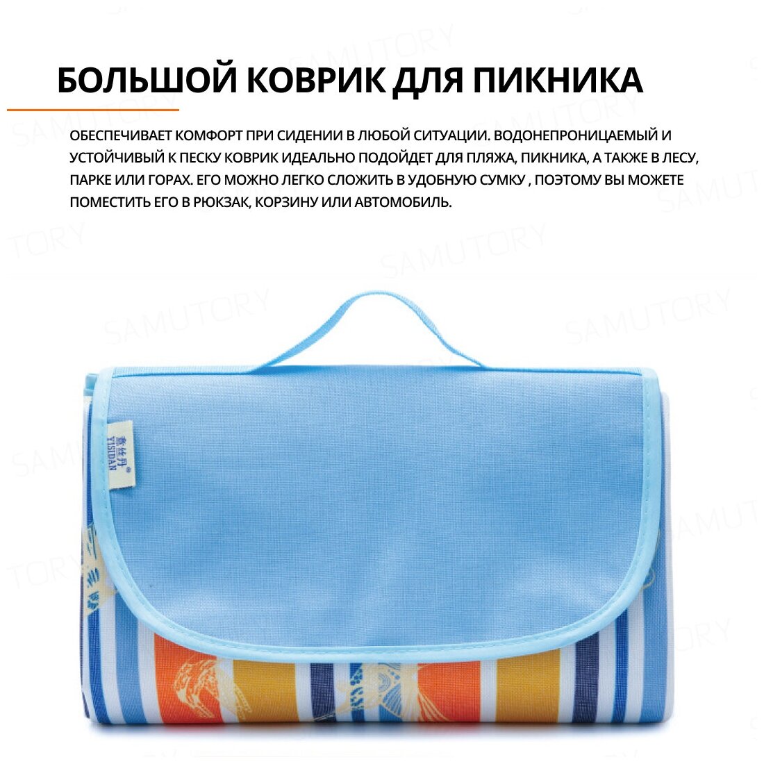 Лучшие цены. Водонепроницаемый, складной коврик для пикника - актуальный аксессуар как для отдыха на природе, так и для походов на пляж, работы на даче или поездок в деревню! Покрывало позволит комфортно расположиться небольшой семье или компании друзей. Непромокаемая подкладка позволит сидеть на пледе не боясь испачкаться, промокнуть или замёрзнуть. Верхний слой водонепроницаемого пледа выполнен из неприхотливого полиэстера, отлично поддающегося стирке. Магазины в вашем городе.