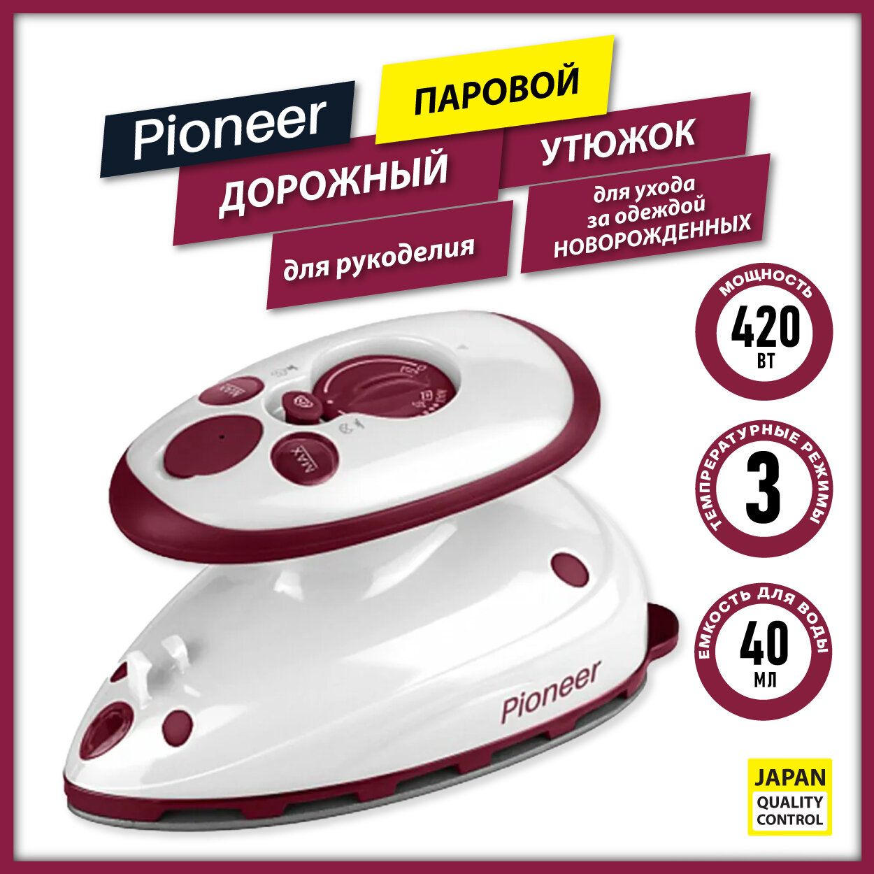 Утюжок компактный для пэчворка Pioneer / Утюг для детской одежды / Для рукоделия / Для хобби и творчества