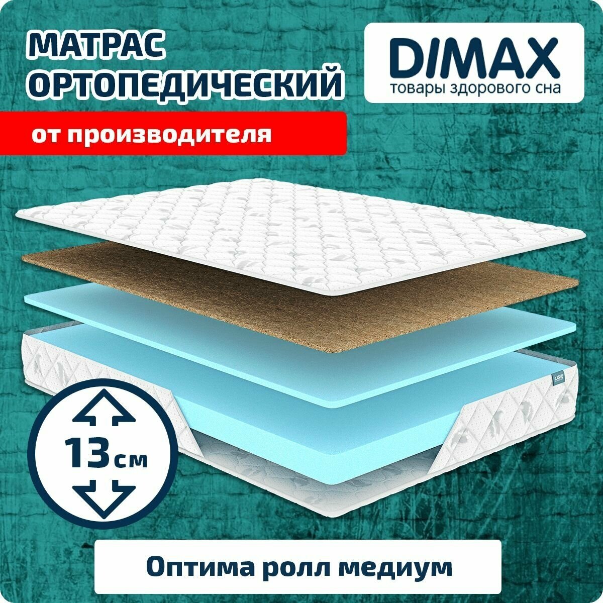 Матрас беспружинный Dimax Оптима ролл медиум, 120х200 см, толщина 13 см 9 270 ₽ Подробнее